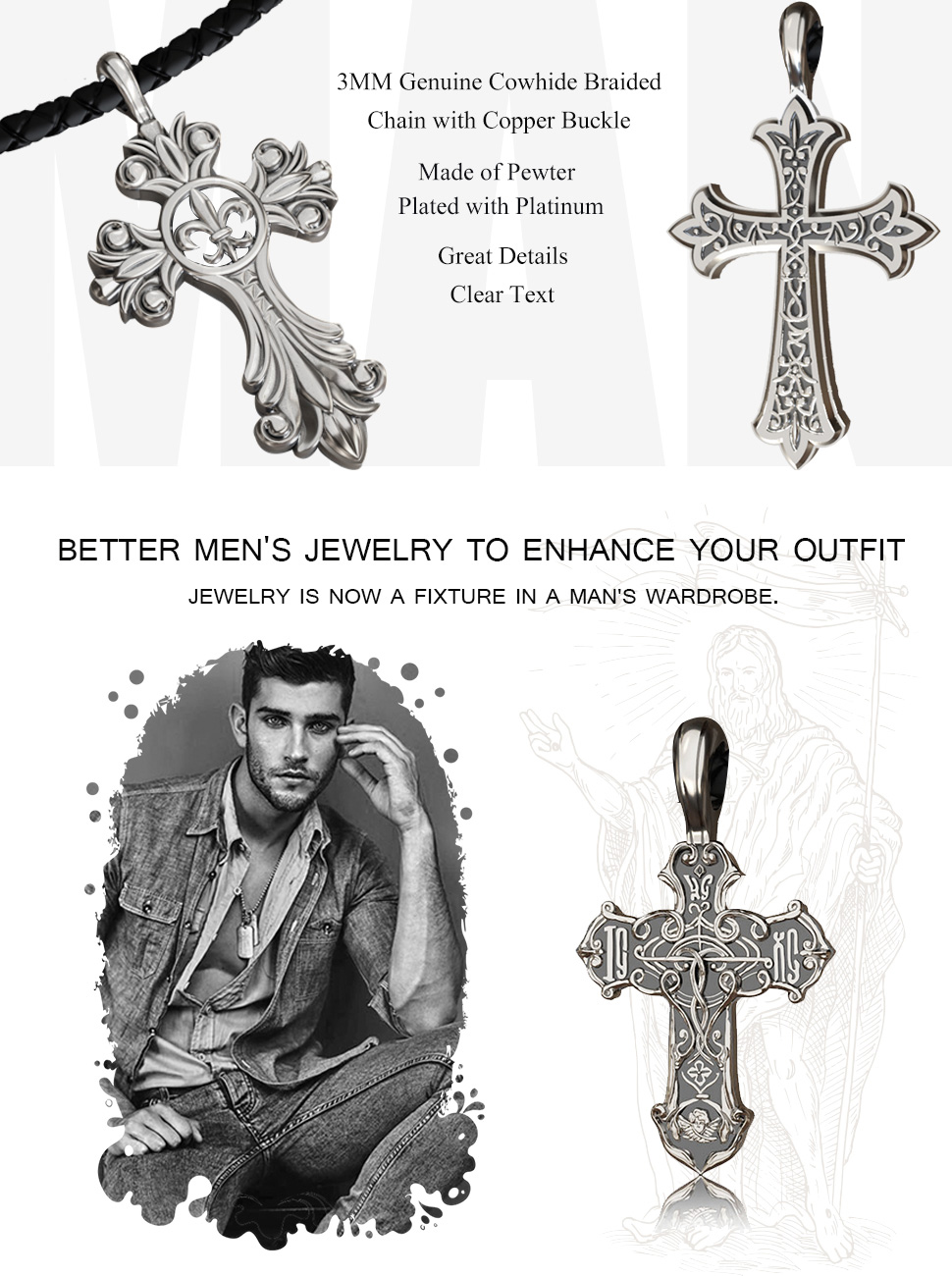 STYLISH--Religion Cross Pendant with Vintage Byzantine Chain, Nice Construction and Eye-catching, Suit Most Costume.