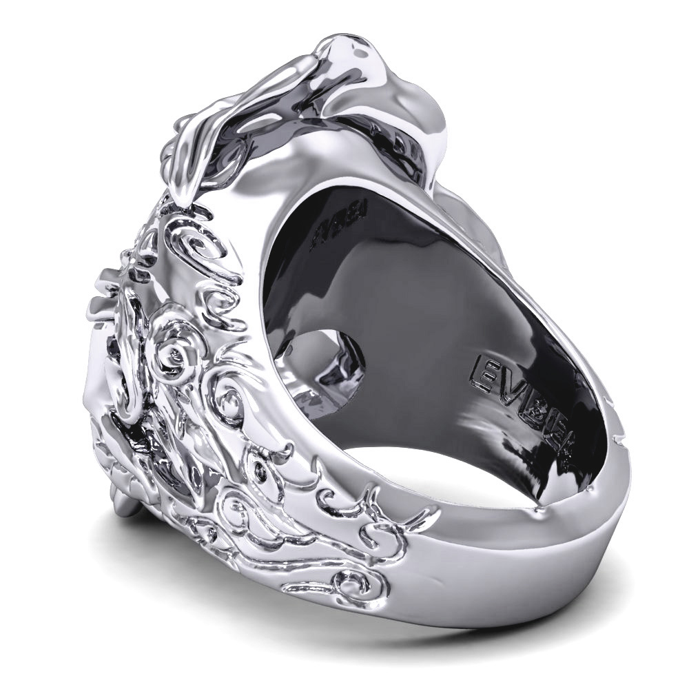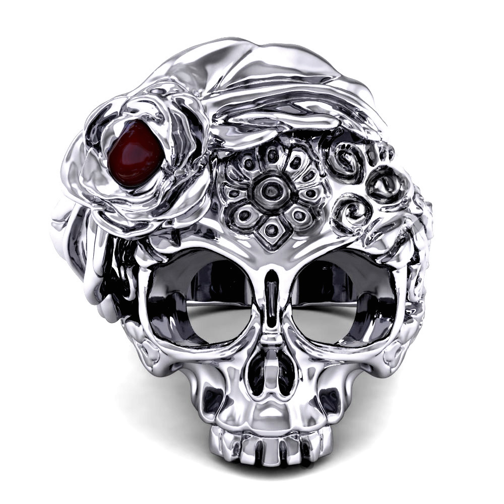 Women's Gothic Style Sugar Skull Flower Ring with Ruby Vintage Punk Jewelry